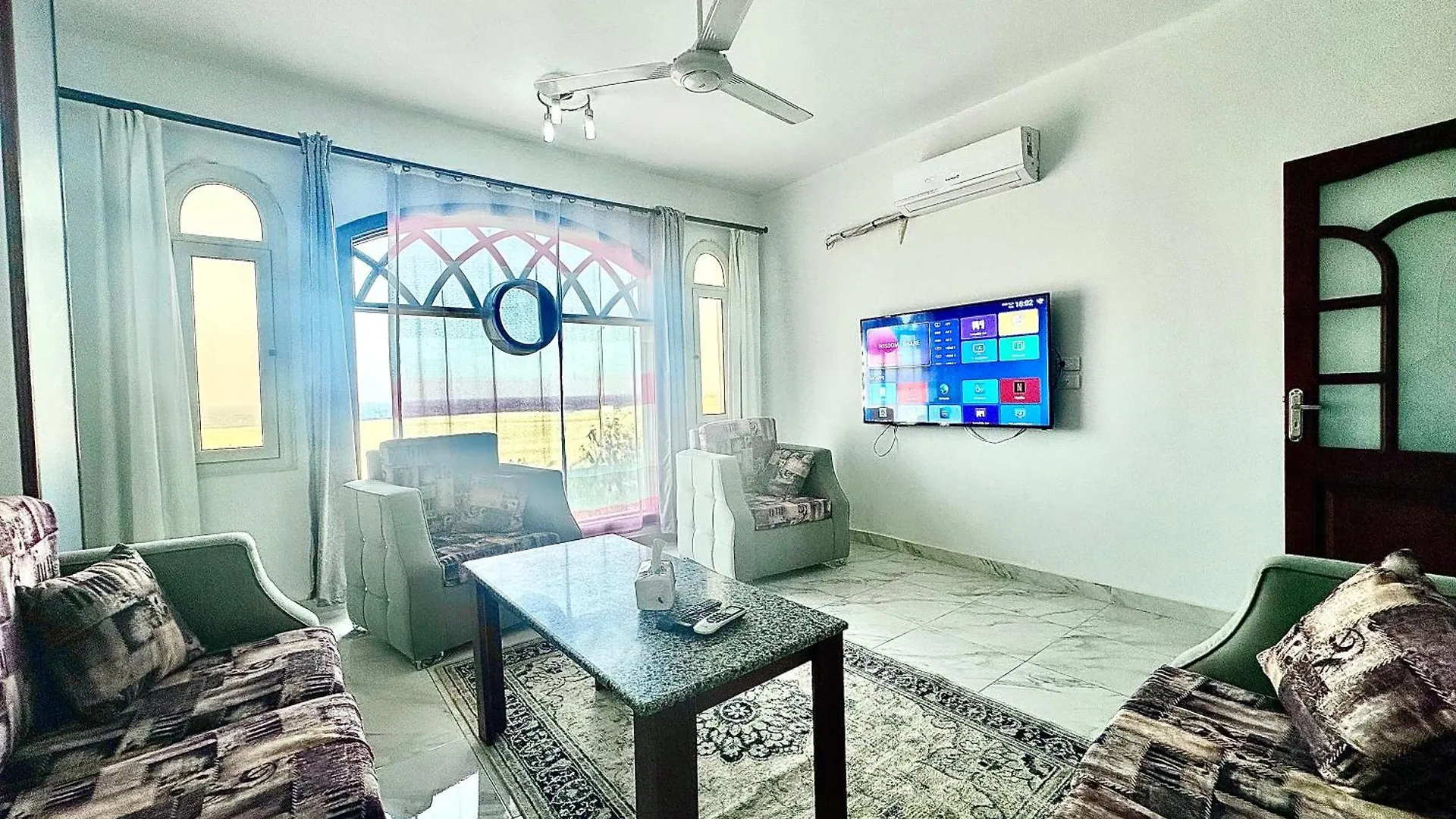 الشقة تقع على على شاطئ البحر، على بعد 10 دقائق بالسيارة عن مسجد الشيخ آل فران.